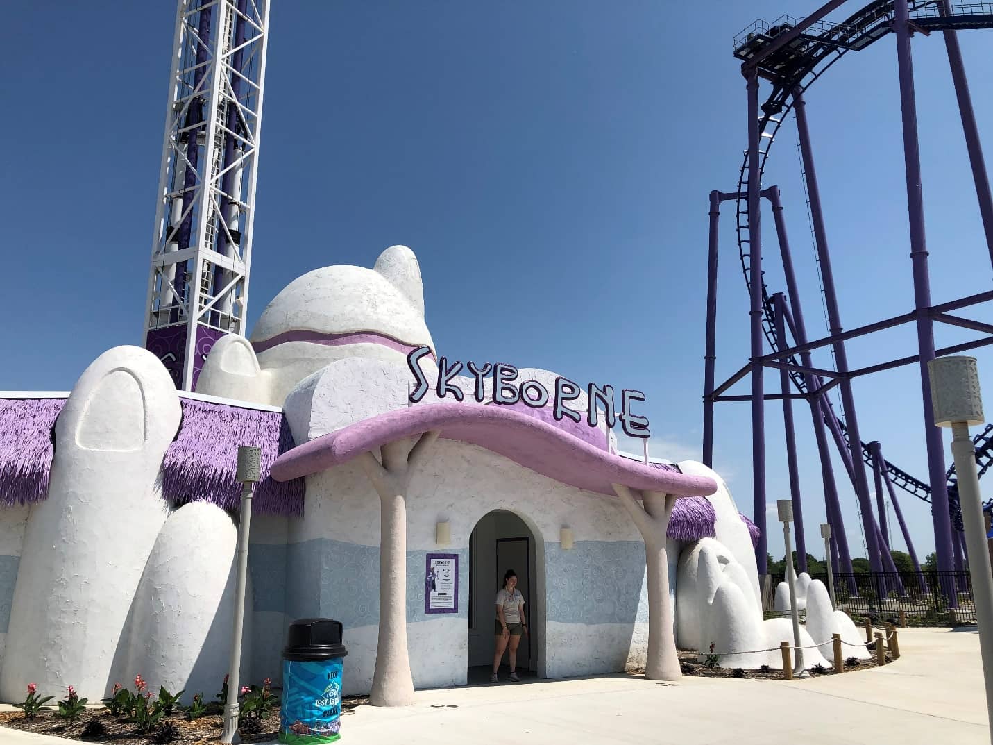 Lost Island was built for a budget of just $100 million, and as such the park features primarily stock model attractions and used rides from other parks. However, this park goes all out in making everything fit the lore, and Skyborne is a perfect example of such. While the ride itself is a standard S&S Turbo Drop, it features an elaborate indoor queue filled with props and murals that tell the story of the Udara people and their attempts to reestablish their floating city.