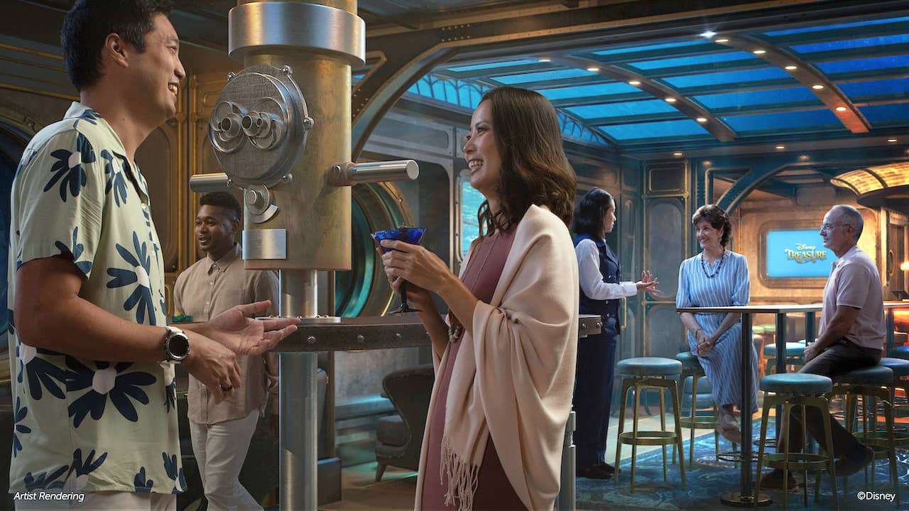 The Keg & Compass also departs, to be replaced on the Treasure by Periscope Pub, themed to 20,000 Leagues Under the Sea. Yup, Disney Cruise Line is headed to YesterWorld for this bar, which honors the late Fantasyland attraction from the Magic Kingdom, as well as the 1954 Disney film that inspired it.