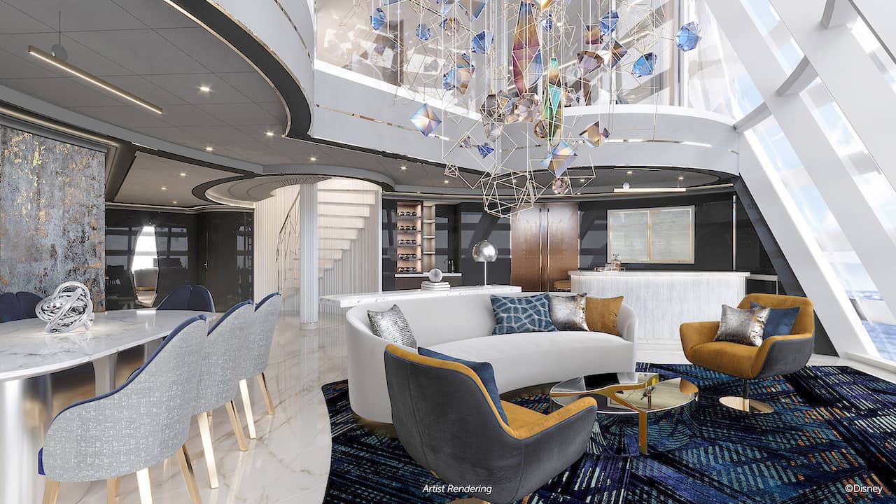 Walt Disney World's EPCOT provides the design inspiration for the Treasure's Tomorrow Tower Suite. The 2,000-square-foot, two-story suite can slep up to eight guests.