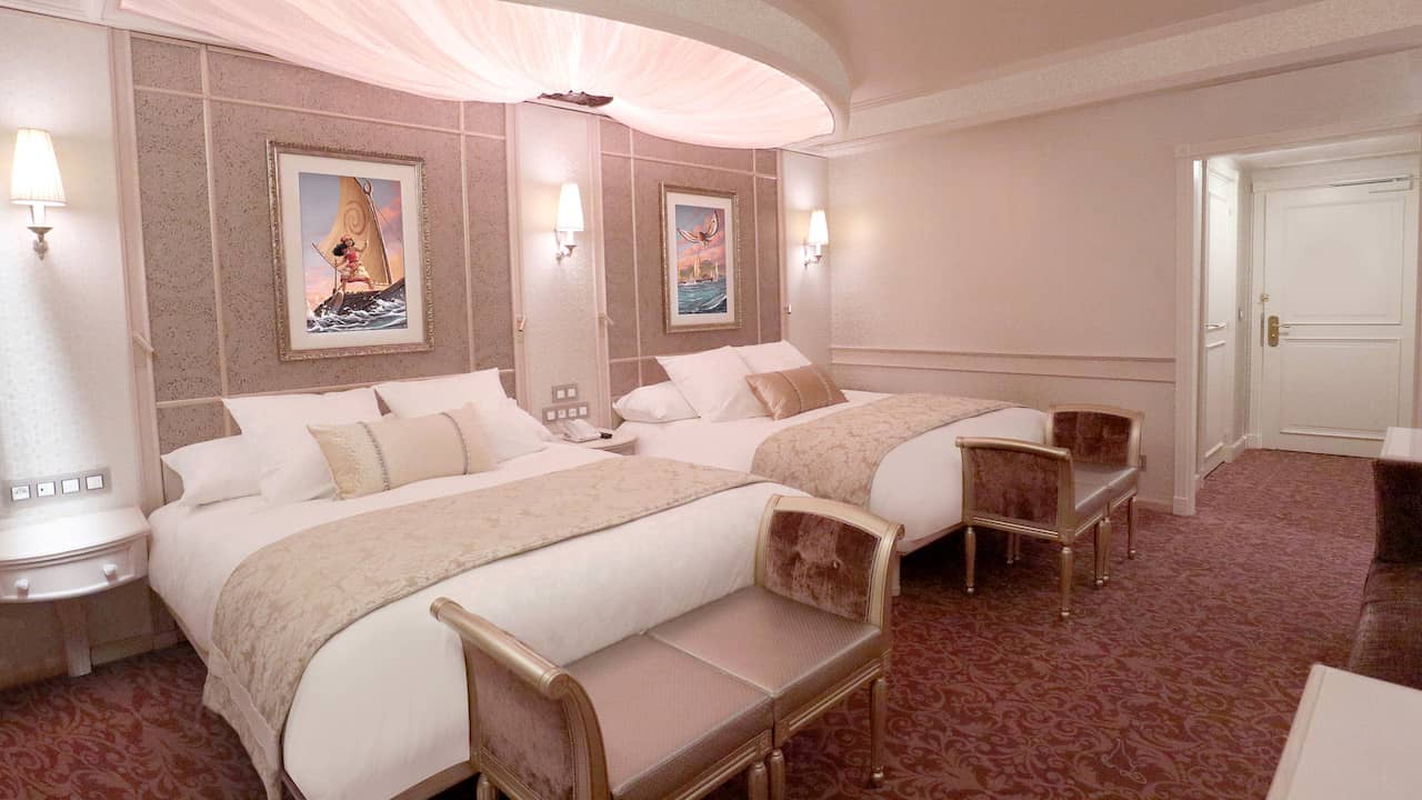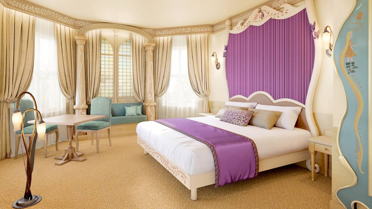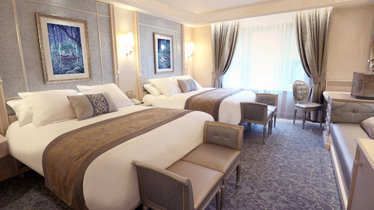 When it reopens, Paris' Disneyland Hotel will feature 487 newly-redesigned rooms and suites, including 346 Superior Rooms, 82 Deluxe Rooms, 41 Castle Club Rooms, 16 Signature Suites, 1 Princely Suite, and 1 Royal Suite. Prices start at $810 for a one-night stay that includes a two-day ticket to the parks.