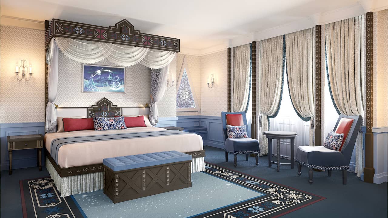 Deluxe rooms will be the same size but also offer an illuminated animated canopy above the bed as well as access to the Deluxe Lounge. A breakfast buffet and themed Tea Time treats also are included with these rooms.