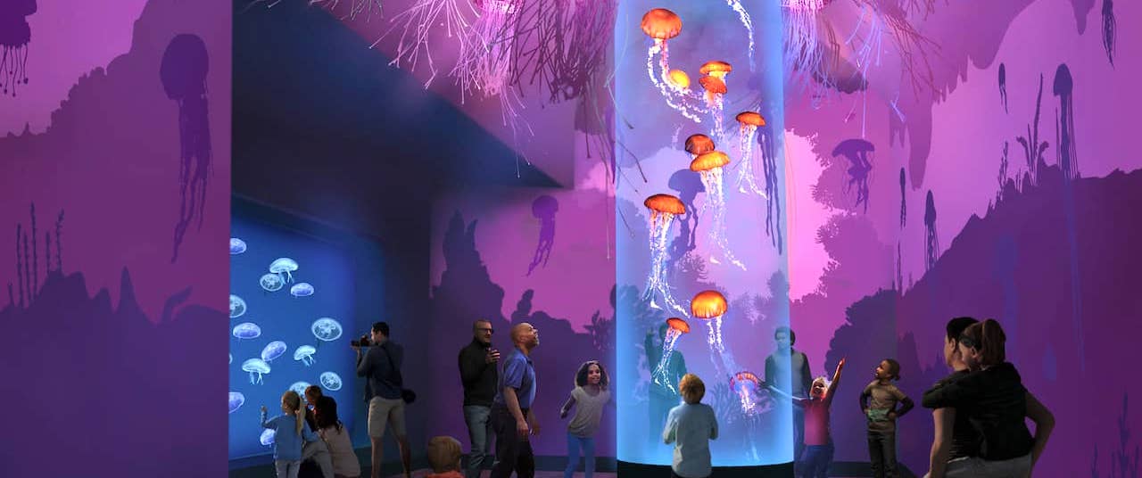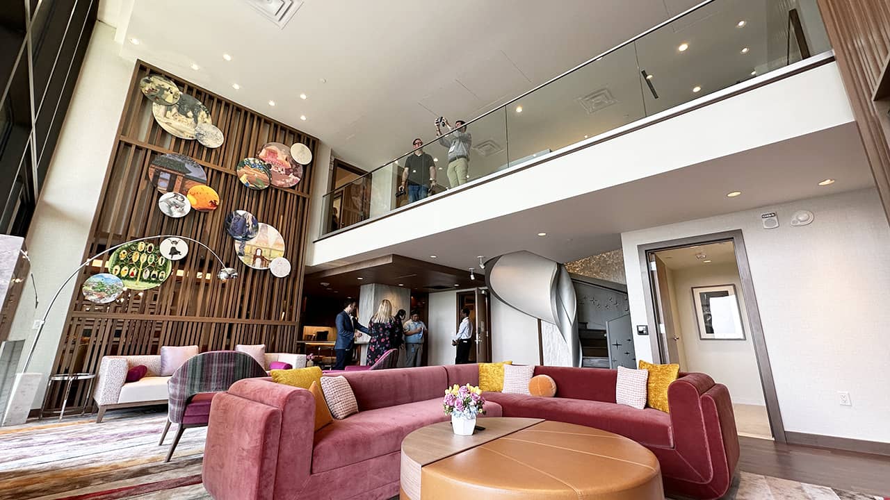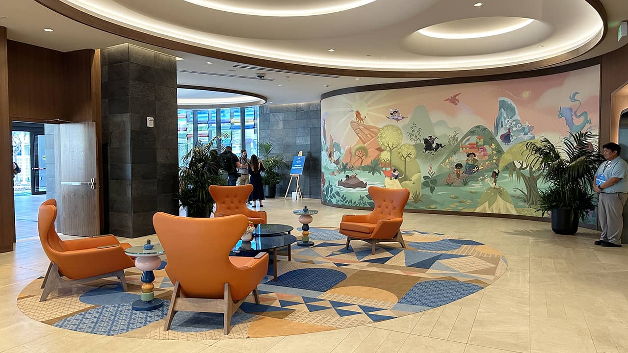 The tower's lobby features the new mural by Disney Animation's Lorelay Bové, set among mid-century-modern appointments.