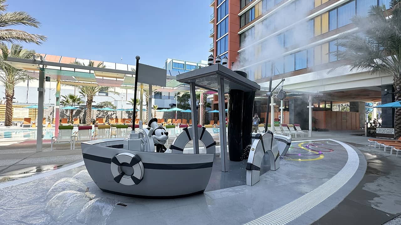 If you're staying at one of the three other towers in the Disneyland Hotel, you will have access to the new pool area behind the Villas, including the "Steamboat Willie"-themed splash pad for young visitors.