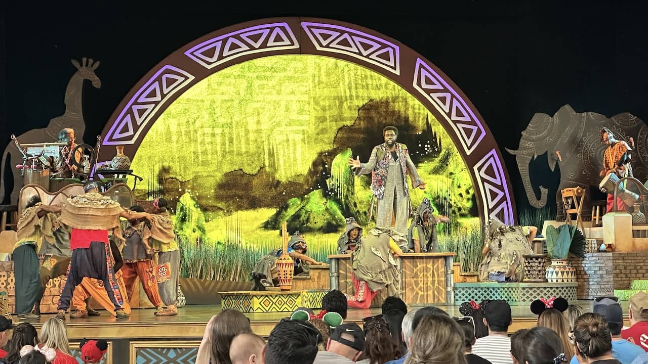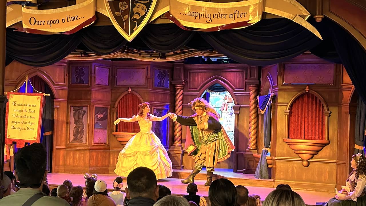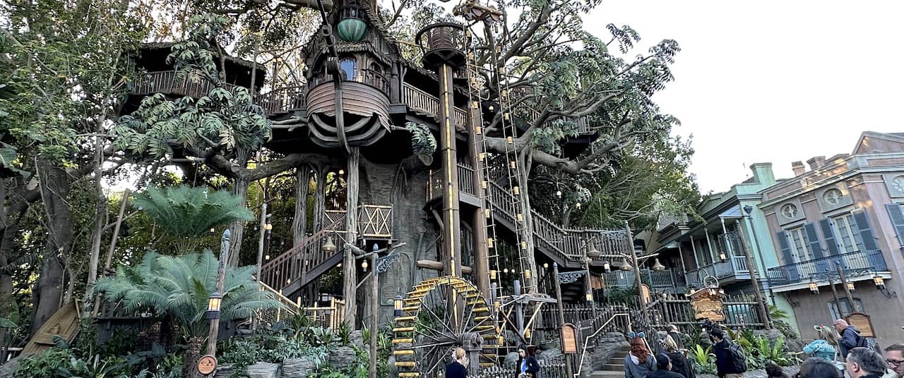 Twelve hours and more than 10,000 steps each later, we had seen two live theater shows ("Tale of the Lion King" and the "Beauty and the Beast" vaudeville show at the Royal Theatre) and Walt Disney's Enchanted Tiki Room, walked that new Treehouse, and ridden Runway Railway, Snow White, Peter Pan, Autopia, Pirates of the Caribbean, and Haunted Mansion Holiday. (It's a Small World Holiday was down for almost the whole day, creating some nasty lines at the Mansion, including a Genie+ return line that once extended all the way up to the bridge in front of the former Splash Mountain. We rode later.)