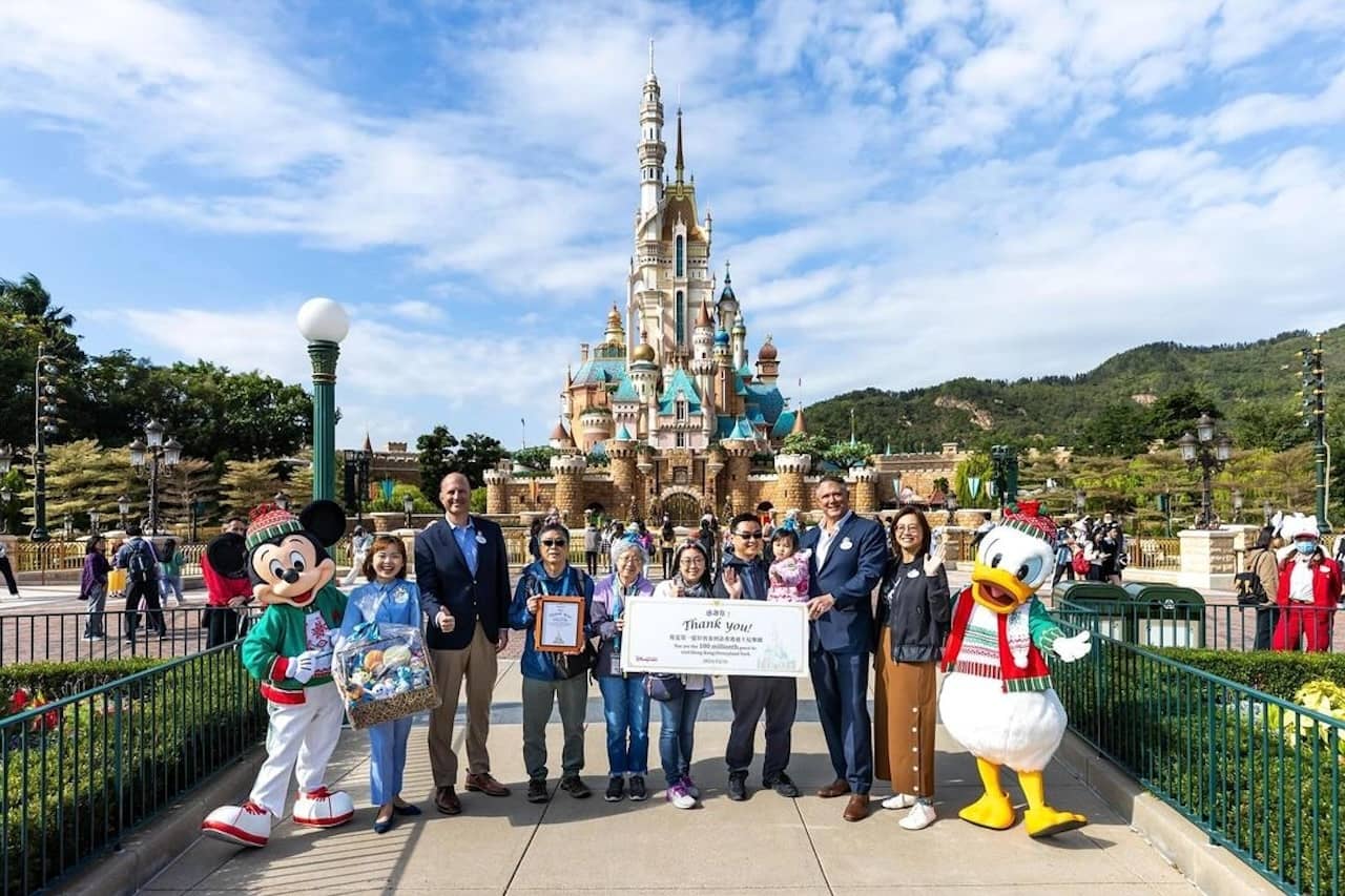The Hong Kong Disneyland theme park this week welcomed the 100th millionth visitor to the park since its opening in September 2005. Park President Michael E. Moriarty just shared a photo of the Chen family - the designated 100th million visitors - meeting Mickey and Donald in front of the park's new centerpiece icon, the Castle of Magical Dreams.