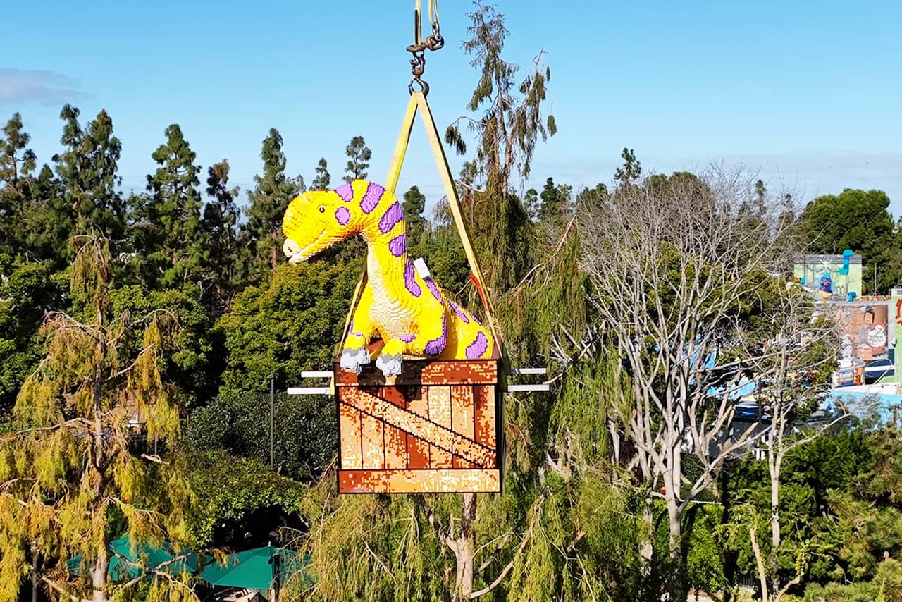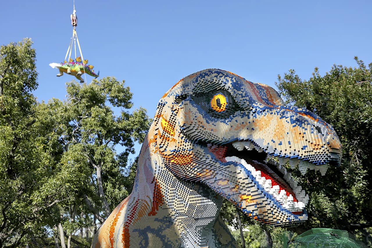 Dinosaurs are flying above Legoland California this week. The park has shared images of it installing several Lego dinosaurs in its Dino Valley land, which also opens this spring. When complete, the land will house 35 dinosaur models, made from more than 1.8 million Lego bricks.