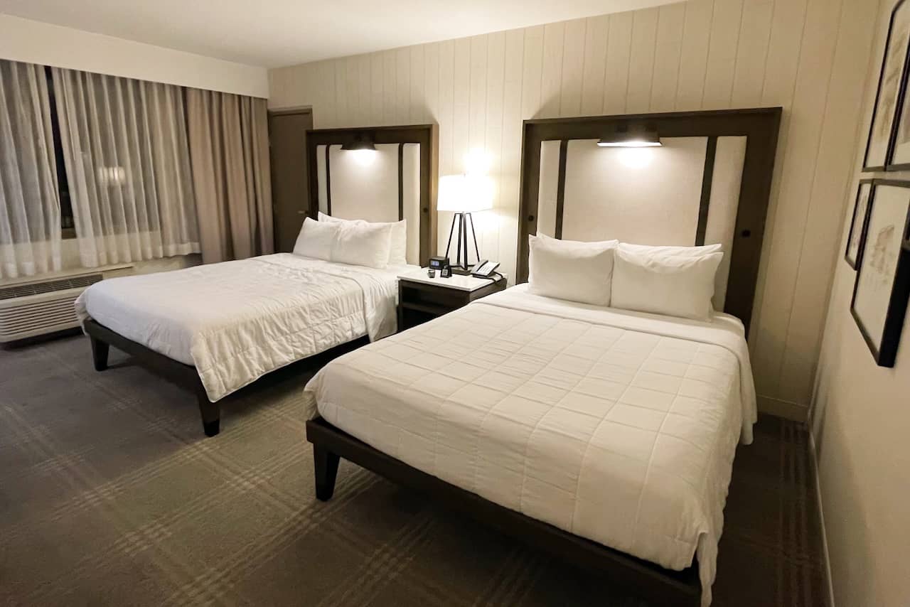 My standard two queen room was outfitted with all the necessities plus a mini fridge and Keurig coffee maker, a variety of bedside outlets, and a large light-up vanity mirror in the bathroom. Every room has a small collection of old timey dinner plates on the wall, which serve as the primary cozy touch in an otherwise simple and sleek space. The bed itself was very comfortable, with crisp sheets and plenty of fluffy pillows.