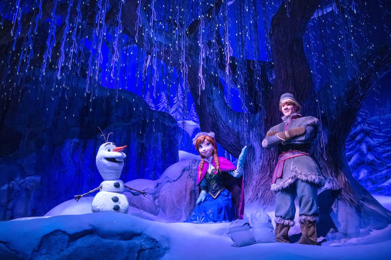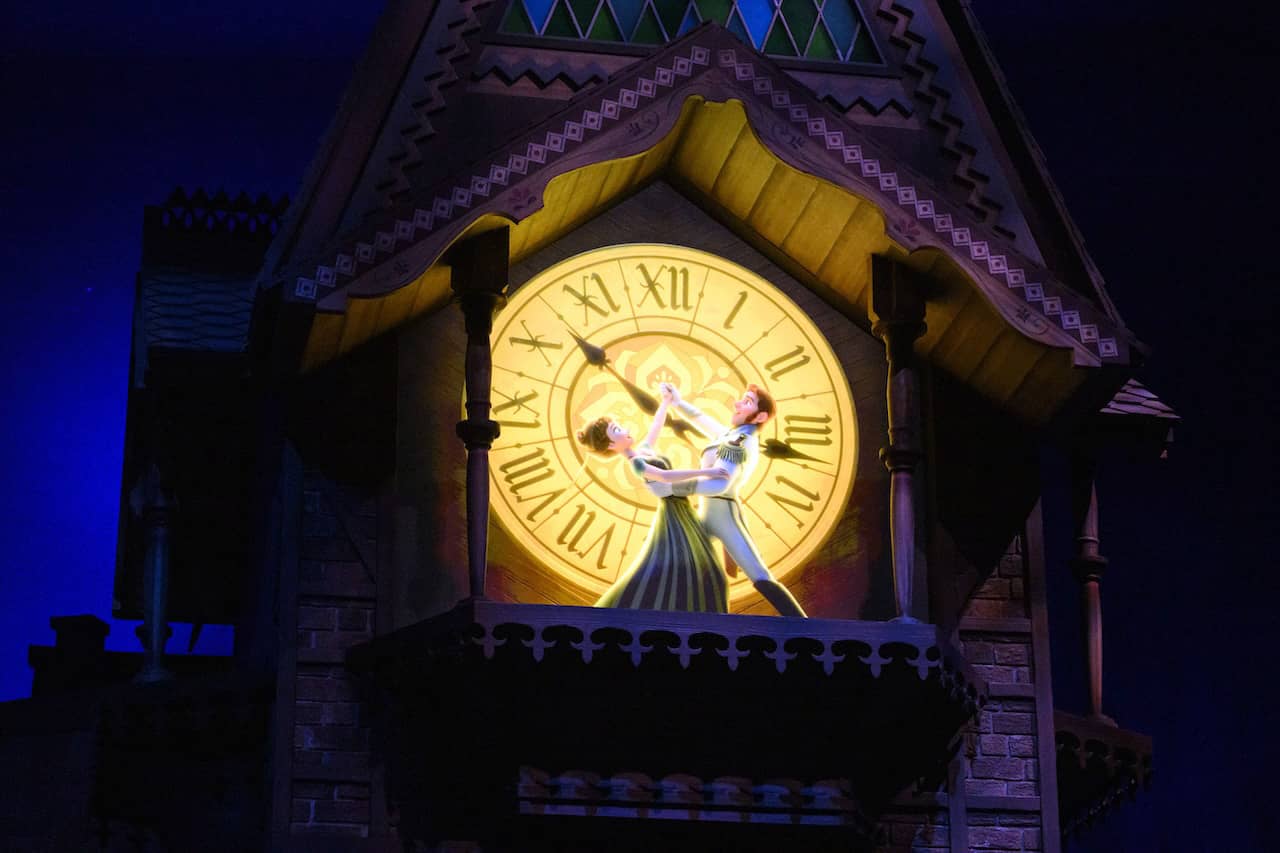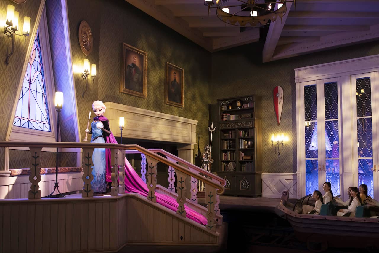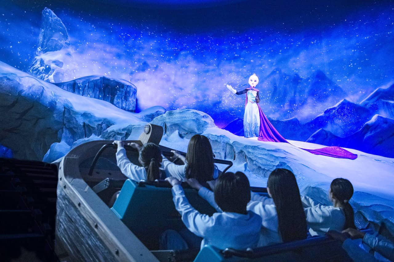 Even though Anna and Elsa's Frozen Journey is a new take on the Frozen Ever After concept, it still delivers the moments of Elsa in the Ice Castle singing her anthem that fans of the original versions of the ride have come to expect. And the Tokyo Disney version also employs the direction-changing flume switches that the original EPCOT installation carried over from its previous life as Maelstrom in the park's Norway pavilion.