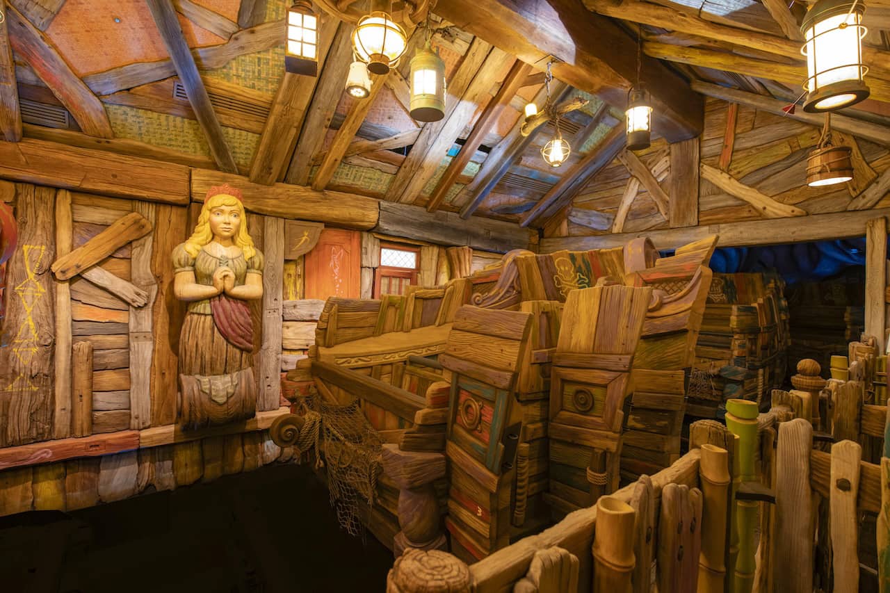 Peter Pan's Never Land Adventure features a preshow, on screens embedded within the practical scenery, that sets up our tale, which will draw Peter Pan away from the Lost Boys to help rescue John Darling from the clutches of Captain Hook.