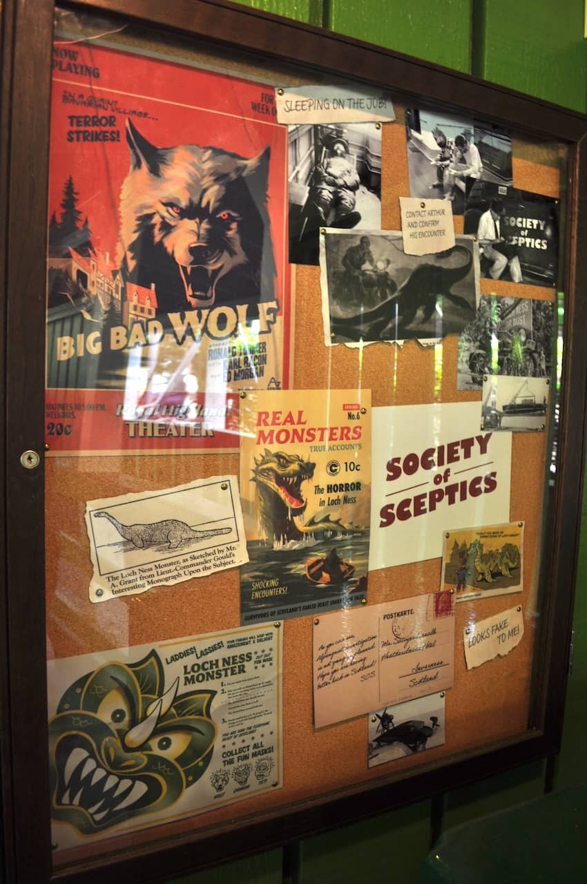 The first indication guests will see significant changes is in the main queue house, where some bulletin boards have been added to one of the walls with newspaper clippings, tourism pamphlets, and old photos of past expeditions to uncover the Loch Ness Monster. There are tons of Easter eggs within these boards, including callbacks to past attractions such as Big Bad Wolf, Questor, and the original park name, The Olde Country.