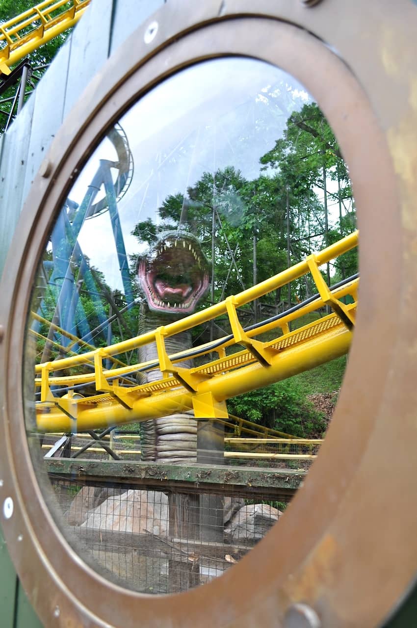 Audio has also been added to the turn prior to the first lift where an exploration shack and a recently damaged expedition vehicle has been recovered. However, the biggest additions to the coaster have been made to the tunnel covering the double helix, which serves as Nessie's lair. The park added audio, lighting effects, and video screens inside the tunnel to bring guests face to face with the legendary creature. Once you think you've escaped, Nessie makes one final appearance following the second loop.