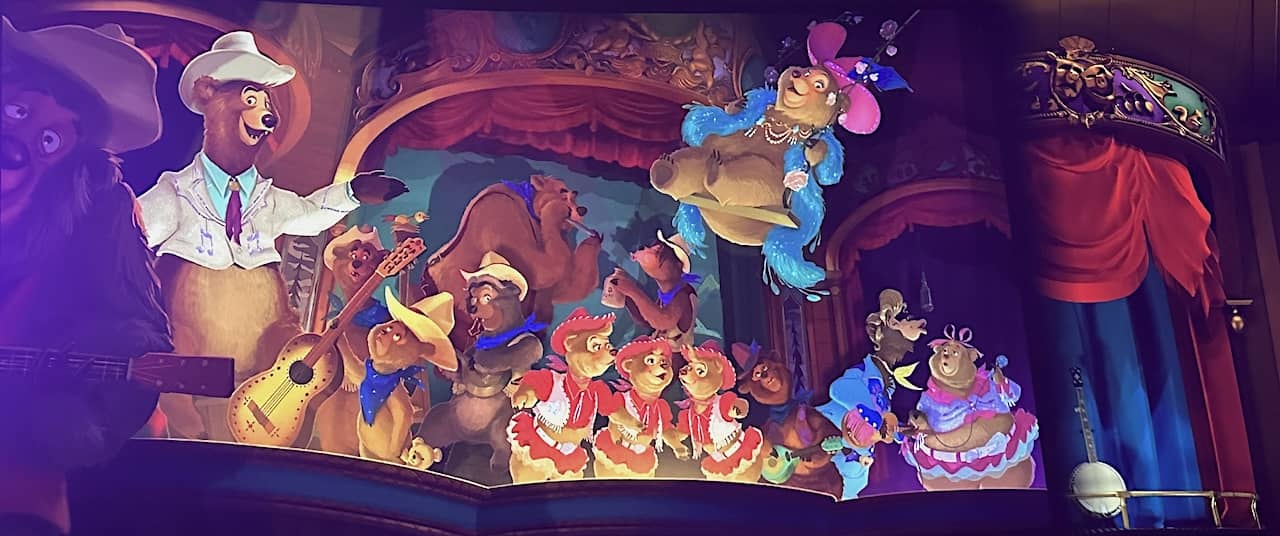 As on Radiator Springs Racers, the story is our journey. We are not on our way to a race but to a party, thrown by Tiana and Prince Naveen at their home to celebrate "family and friends of New Orleans." Along the way, we pick up that band inside the stunningly designed bayou that Walt Disney Imagineers have crafted for the ride.