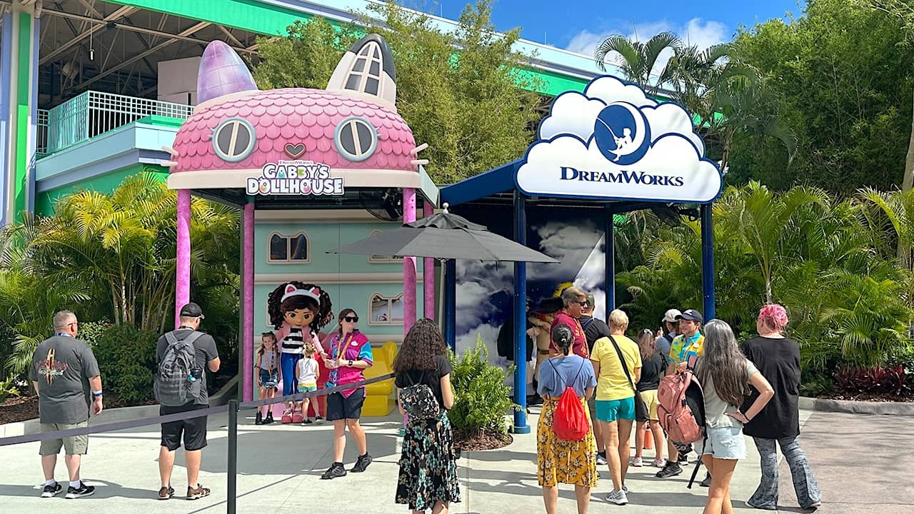 I visited the new land during its media preview yesterday, and found that DreamWorks Land delivers not just several active play areas, but also abundant character meets, a couple of shows, and one rethemed roller coaster that's designed for the kids. The first thing that families will see in the new land is one of those franchise cameos - Gabby's Dollhouse.