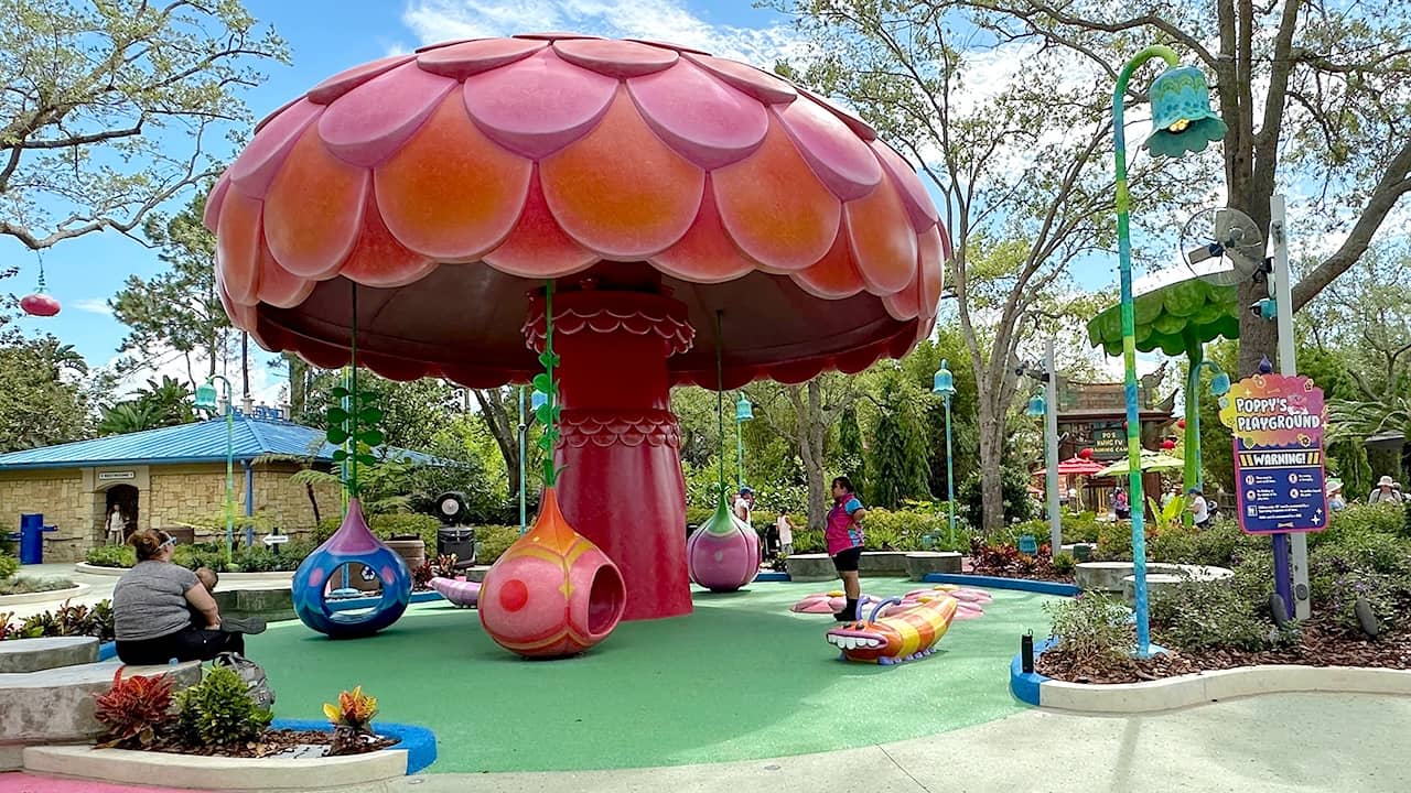The second zone in DreamWorks Land belongs to Trolls. Poppy's Playground offers some welcome shade for toddlers in a soft play area.