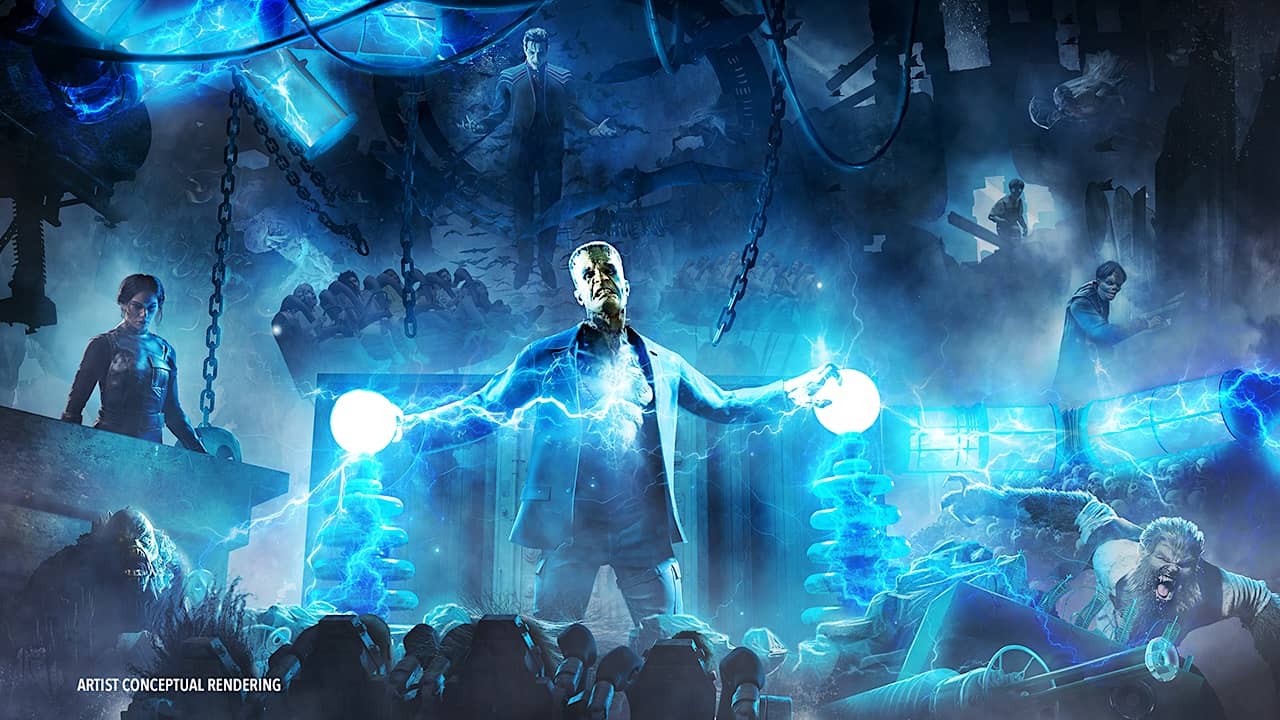 The land will feature two rides. Monsters Unchained - The Frankenstein Experiment will be Kuka-arm dark ride in Frankenstein Manor, where Dr. Victoria Frankenstein's plan to control Dracula fails, unleashing The Wolf Man, The Mummy, The Creature from the Black Lagoon, and the Brides of Dracula.