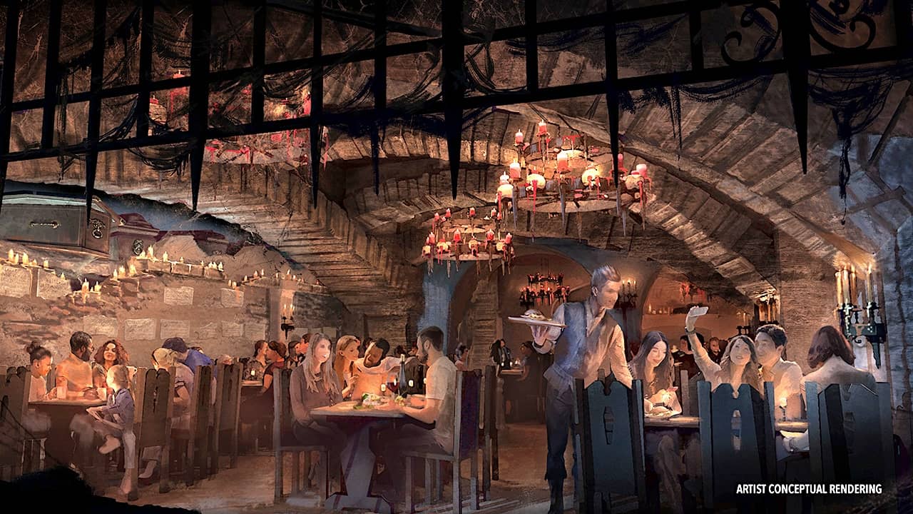 When you are ready to eat, Dark Universe will offer Das Stakehaus, a vampire-themed table service restaurant serving kebabs, burgers, sandwiches and more.