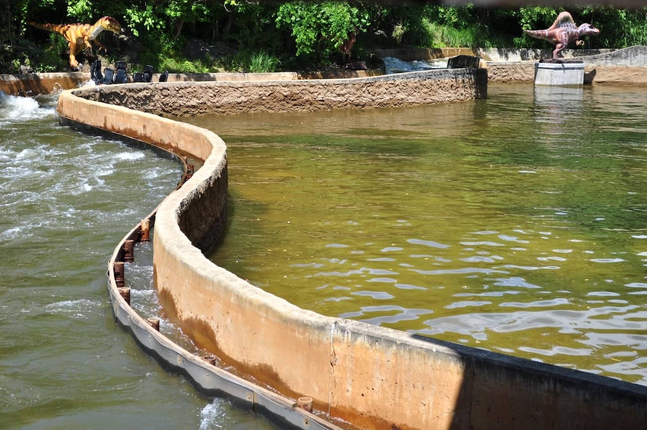 QuantumCanyon Rapids layers a time-travel story onto the existing raft ride. Guests board the traditional circular rafts and pass through a time portal as they leave the station. From there, they are transported to the prehistoric era with dinosaurs roaming along the edges of the raging river. It’s not Jurassic Park River Adventure, but QuantumCanyon Rapids features real animatronic dinosaurs – yes, Six Flags can deploy animatronics when they want. Based on my ride, it looked like the park was still working out some of the triggers for the figures, but it was still impressive to see a park within the Six Flags chain fully commit to a theme.