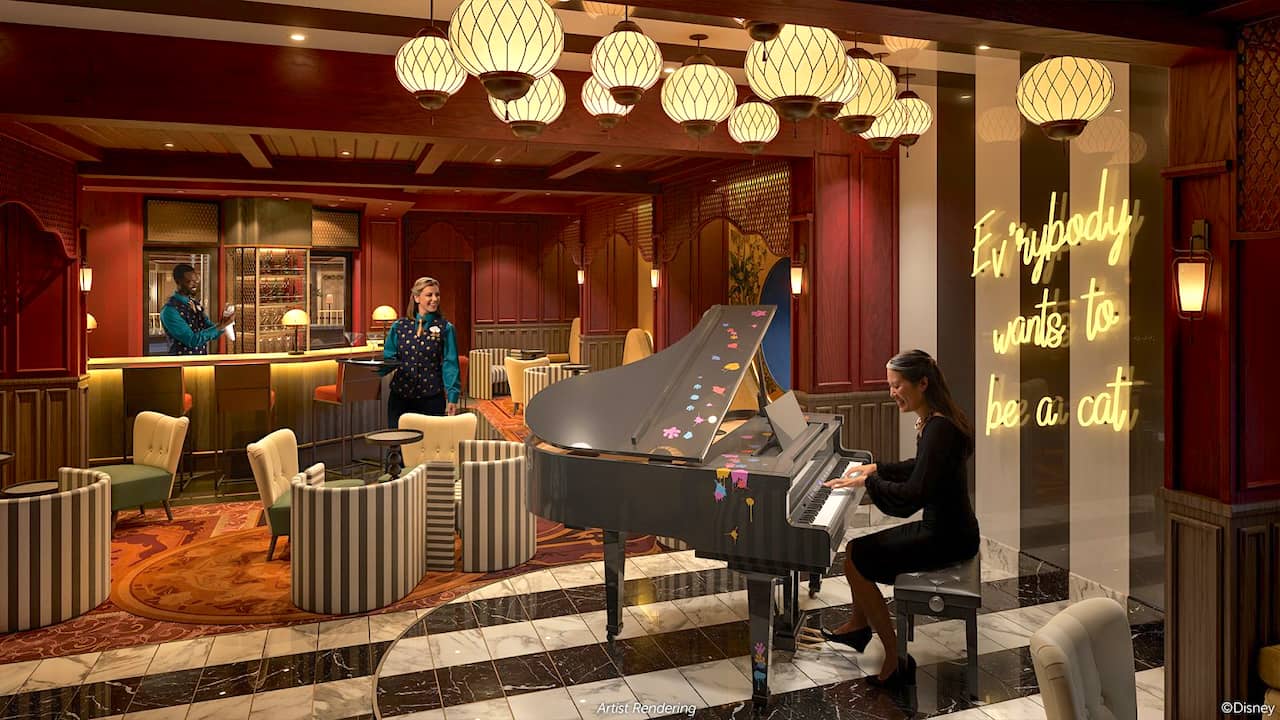 Taking the place of the Nightingale's piano bar on Disney Wish will be the new Scat Cat Lounge, themed to the 1970 Disney animated film, "The Aristocats."