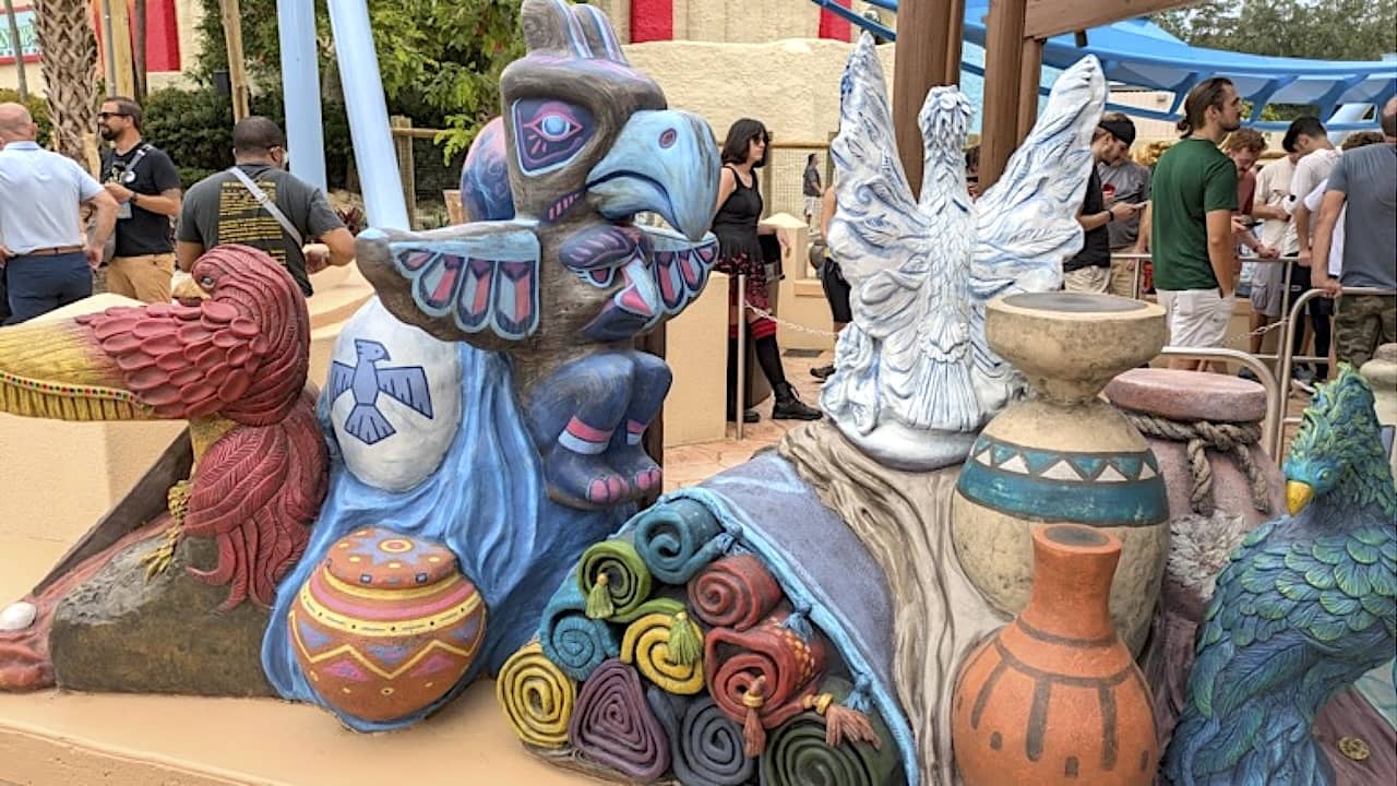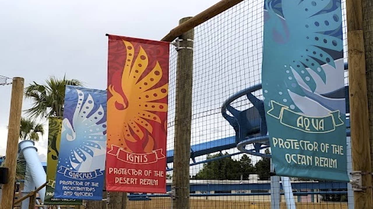 Prior to the ride’s main entrance, guests will encounter banners displaying four types of phoenixes, representing different biomes.