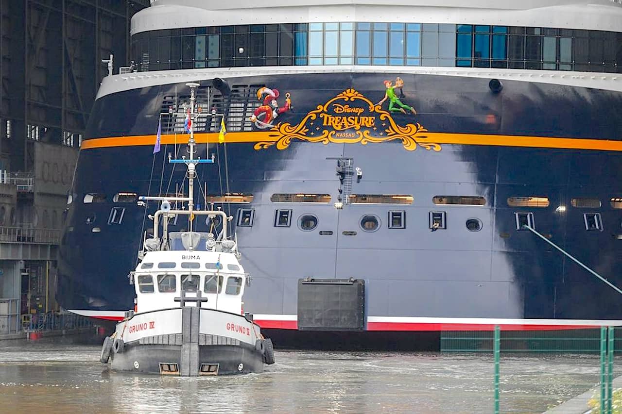 Disney Treasure floated out of its building dock in Germany today, taking its next step toward its Disney Cruise Line debut this December.