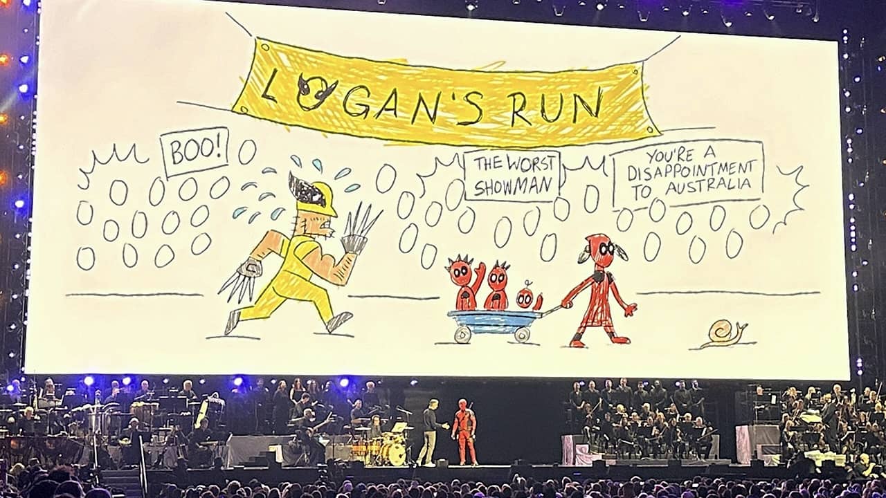 Yes, Deadpool appeared at the show! (Who had 2:20 into the showcase for the jester's arrival?) He dropped a couple jokes about a broken Yeti and flaming dragon before showing slides for various Deadpool attractions, including a Wolverine-themed "Logan's Run" runDisney event that D'Amaro quickly rejected.