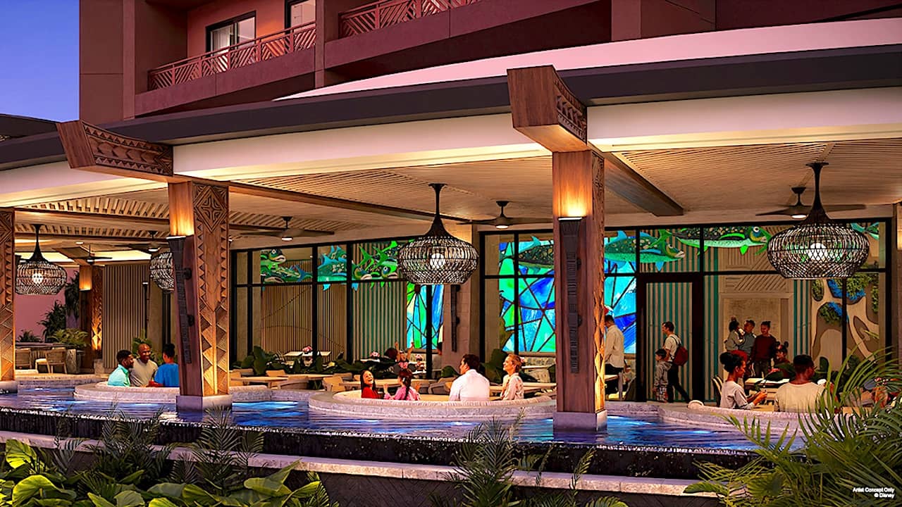 Disney also revealed the name for the Island Tower's restaurant and bar - Wailulu Bar & Grill. It will feature a dining room Polynesian-inspired artwork as well as a casual walk-up pool bar. Both will feature views of Cinderella Castle across the Seven Seas Lagoon. The bar will serve coffee and pastries at breakfast as well as an all-day menu for lunch and dinner. Those menus will be revealed at a later date.