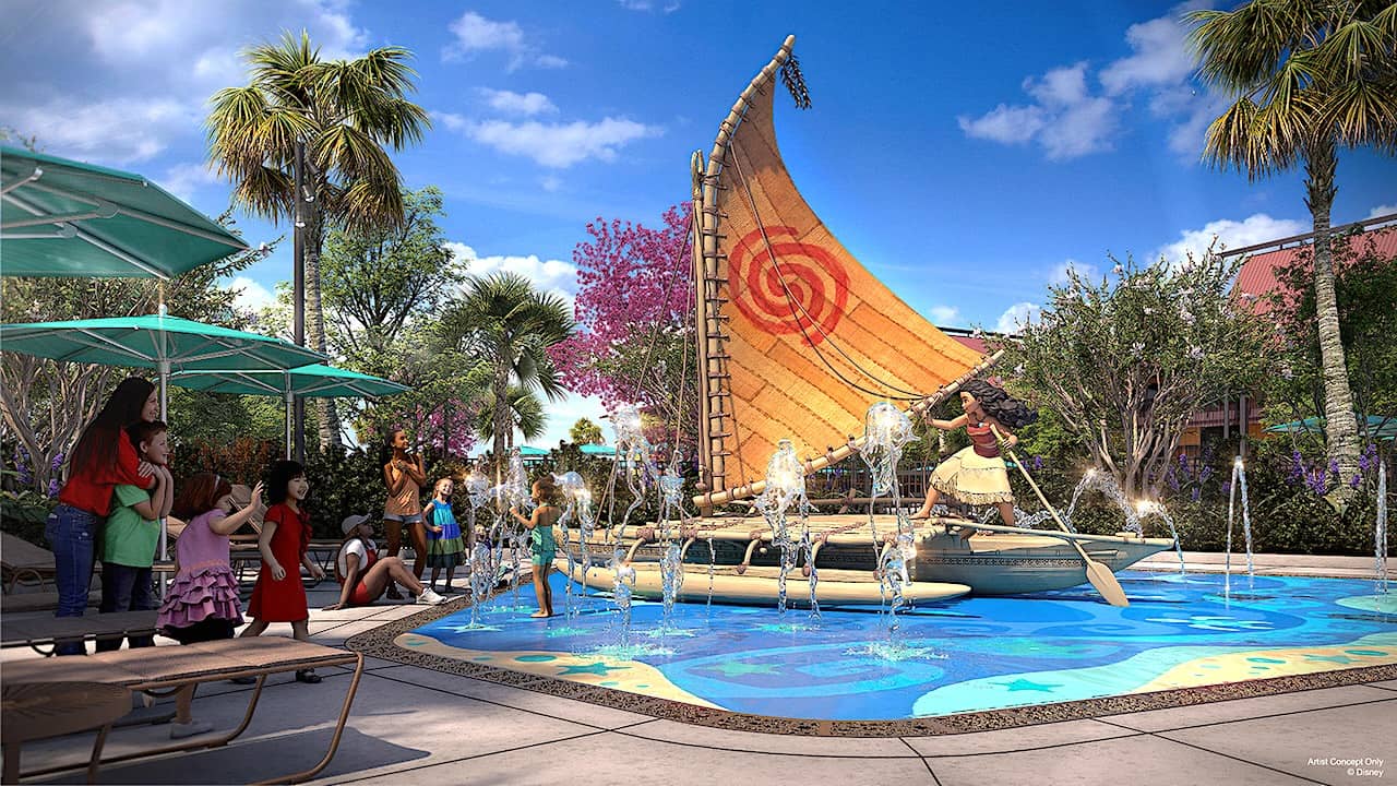 For younger guests, the Island Tower will offer Moana’s Voyage, a splash pad water play area that will include a life-size sculptures of Moana and her canoe.