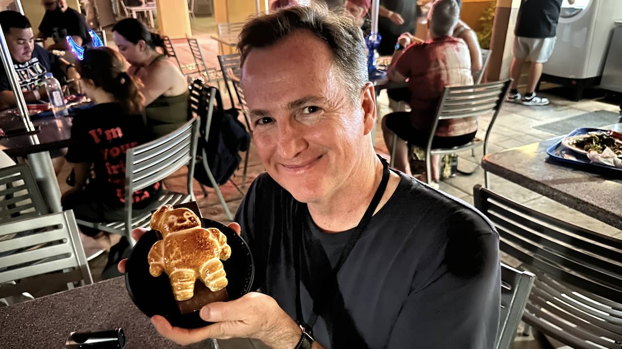 Yes, I finally got my Mini Puft S'more, which is available at the Lower Lot Scoop Shop for $6.99 each. This Puft might be Mini, but he is thicc, with a hefty marshmallow laying atop a bed of milk chocolate and graham cracker, It's not served warm and gooey like a campfire s'more, but the texture is close enough to make it a fun treat on a hot evening. Ultimately, neither of us melted, which I will take as a win.