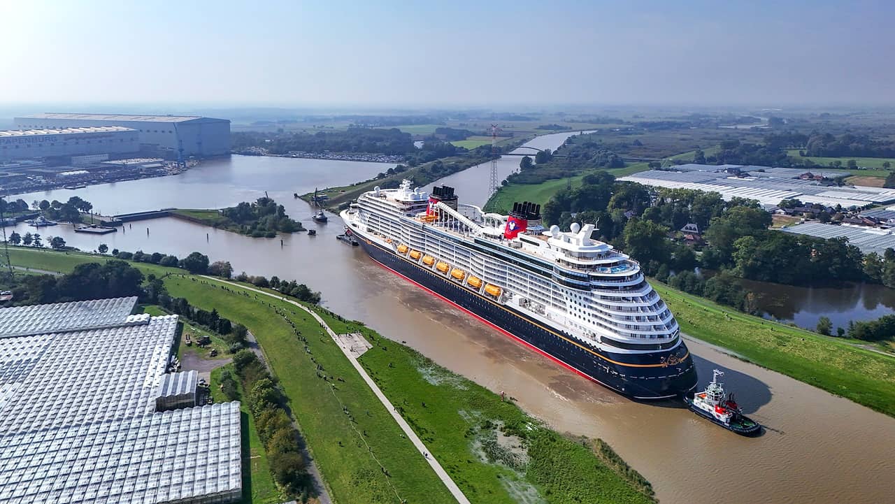 The Disney Treasure had begun its journey from its home at the Meyer Werft shipyard in Germany to its new home at the Disney Cruise Line's terminal at Port Canaveral in Florida. Disney today shared photos of the Wish-class ship as is made its way out from the shipyard.
