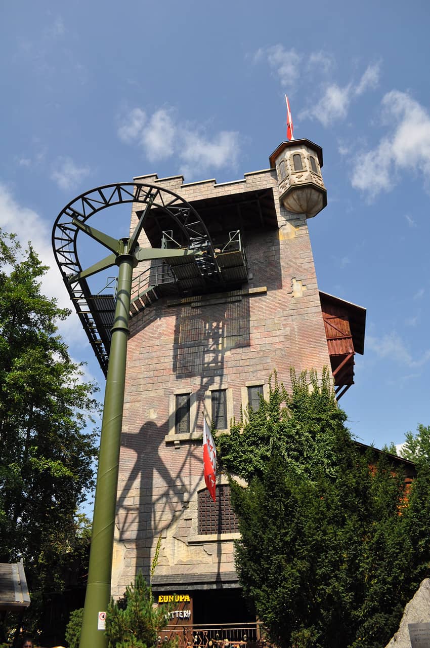 This is another well-themed water ride with an indoor section containing a few animatronics and an outdoor section where guests can shoot at various targets (and guests in adjacent boats as well as onlookers) using water cannons mounted at each seat. Most of the targets trigger some type of effect if you are able to hit them, which makes up for the limited places along the course where you can actually hit other people. The main drawback I find with these types of rides is that it can really tire you out cranking the pump that powers the water cannon, and the wetness of the attraction can be highly variable because it’s based on the accuracy and aggressiveness of other guests. These types of rides seem like a great idea when they’re installed, but they quickly loose their luster. Europa Park’s version is probably the best one I’ve ridden, but that’s not really saying much.