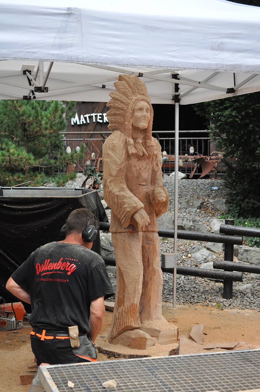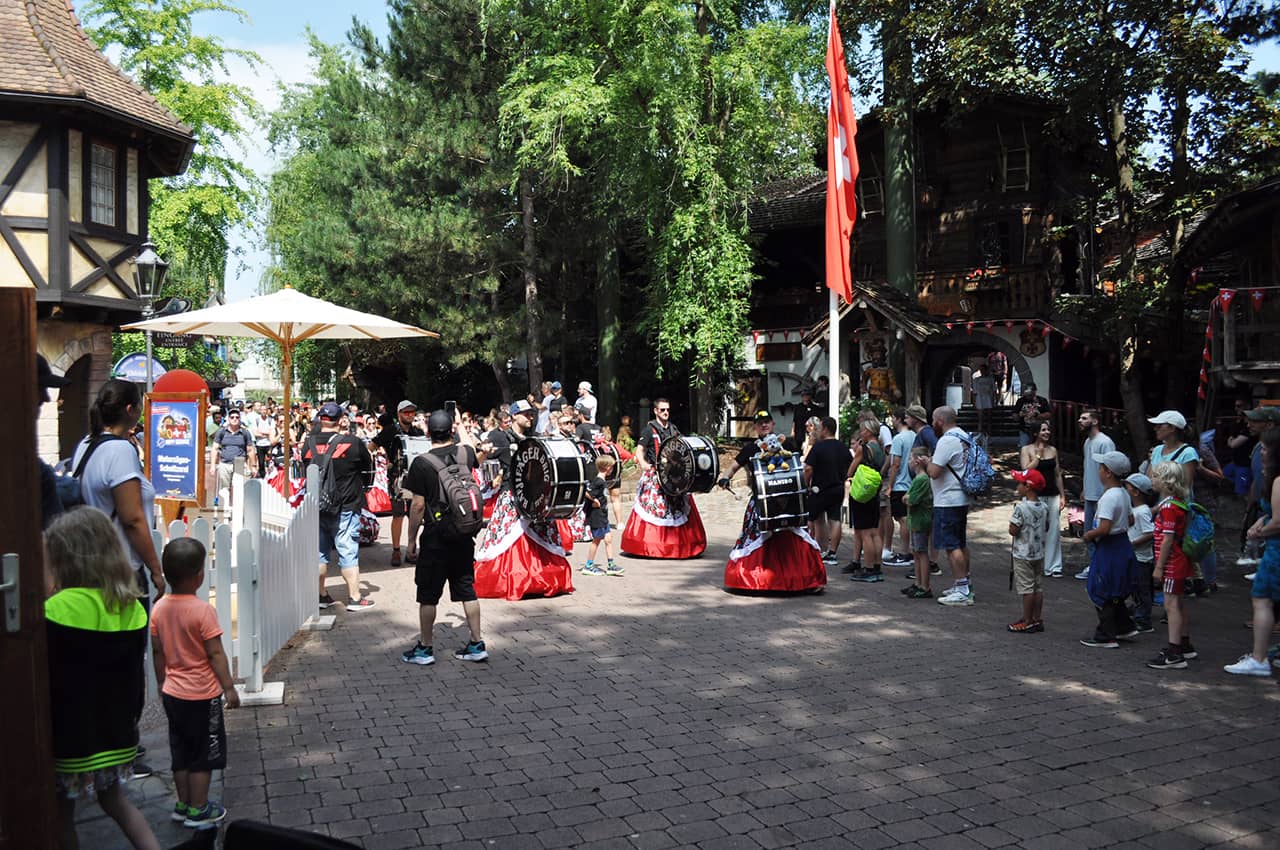 The other ride in Switzerland is Jungfrau Glacier Flight. This is a flat ride where guests board planes that spin around the central support in addition to a circular pattern with three other planes. Each plane is mounted to the mechanism with a hydraulic shock that allows it to swing out further when it reaches the apex of each rotation. For a flat ride, this was a lot of fun, but the airplane theming didn’t quite make sense in the middle of the Swiss village. In addition to the great theming in the Switzerland area, we were lucky to be visiting on Swiss heritage day, which included special exhibitions like a chainsaw artist, marching band, and other cultural presentations.