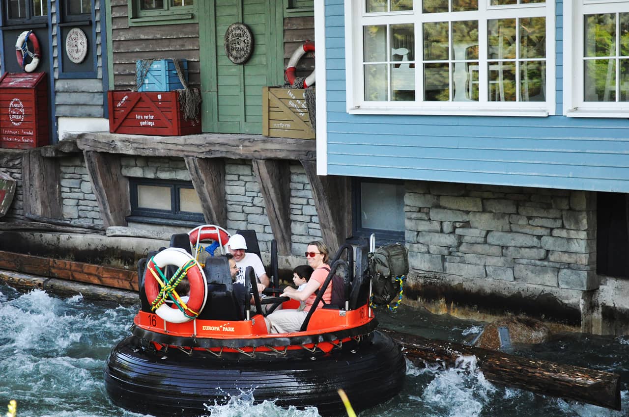 There are three rides in Scandinavia: Vinjammer (swinging boat ride), Fjord Rafting (whitewater raft ride), and Snorri Tourin (dark ride). We ultimately skipped Vinjammer because it’s a pretty standard flat ride, but we did ride the other two attractions. Fjord Rafting is a typical raft ride but thankfully didn’t get you as soaked as other rides of this type.