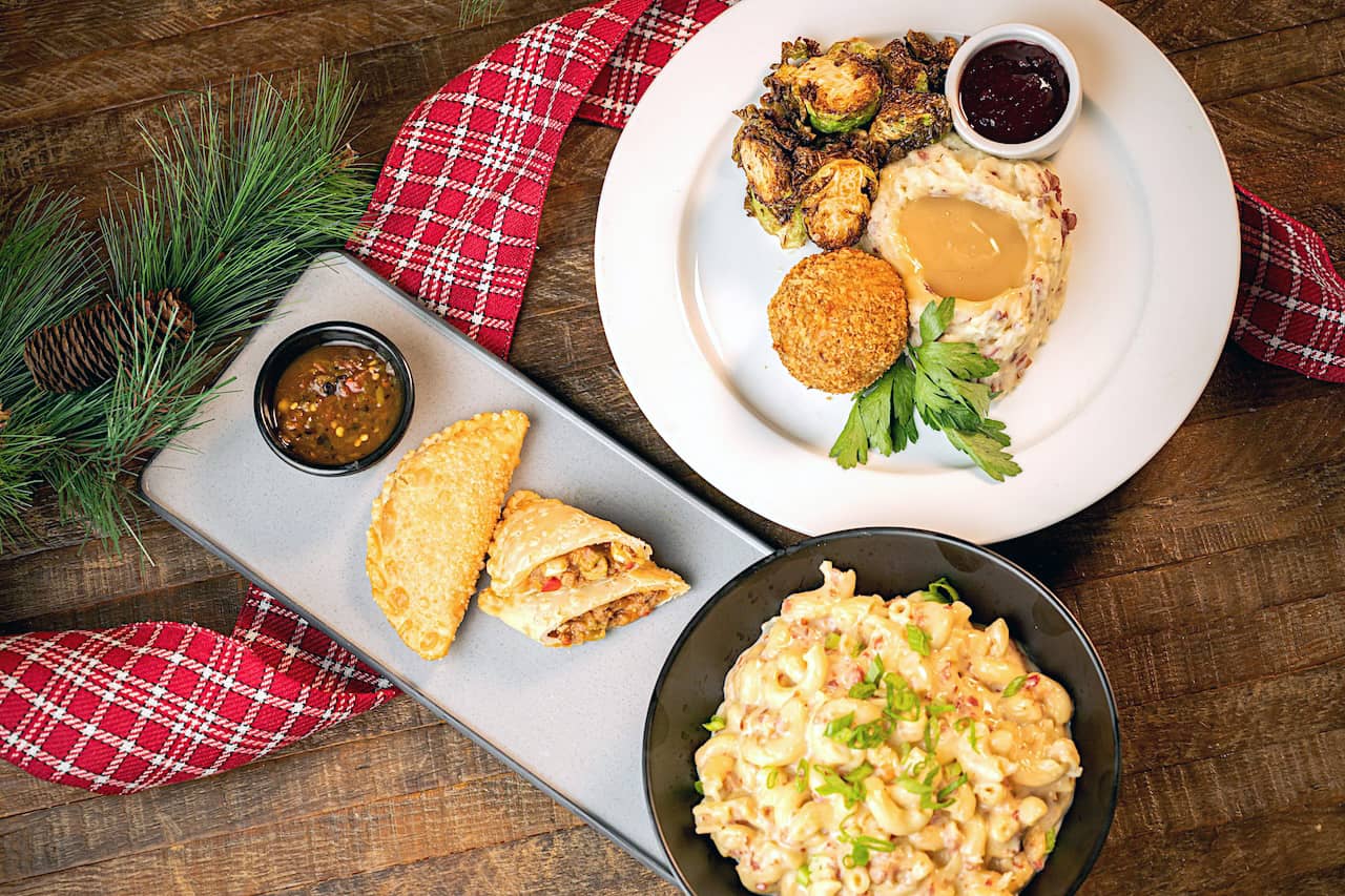 Turkey Ball with Mashed Potatoes, Gravy, and Crispy Brussel Sprouts