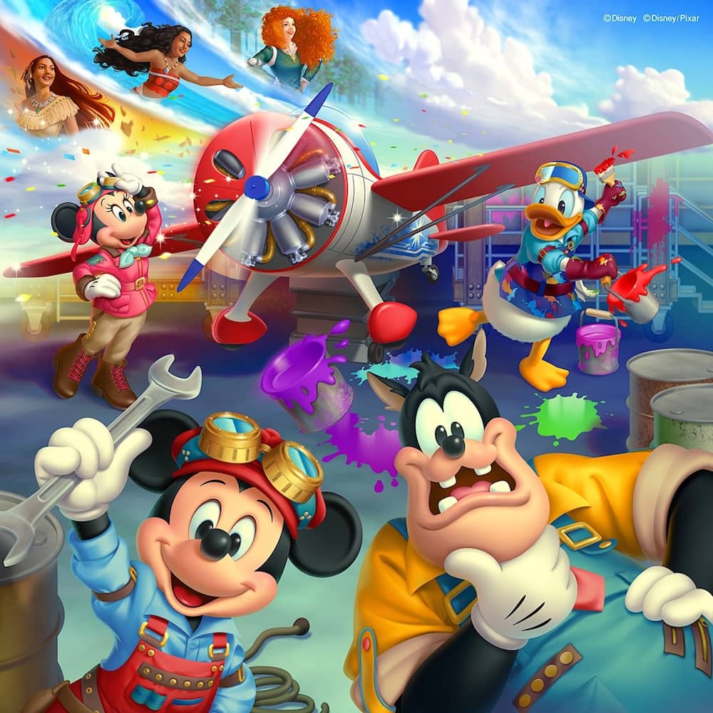 It's not all rare characters, though, with Minnie Mouse starring as the plane's pilot. Other characters appearing during the show will be Mickey Mouse, Donald Duck, Chip, Dale, Miguel, Timon, Merida, Pocahontas, and Moana. Here is the key art, just released by Tokyo Disney Resort.