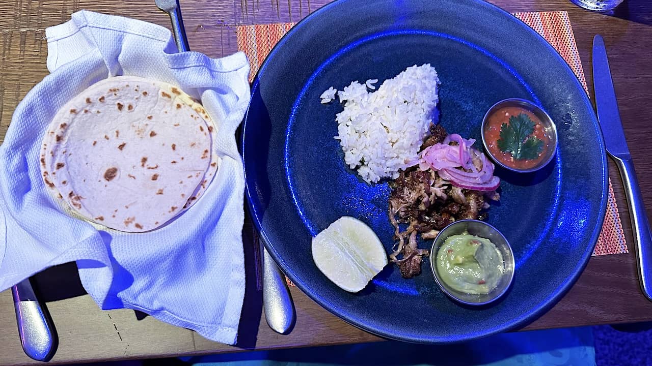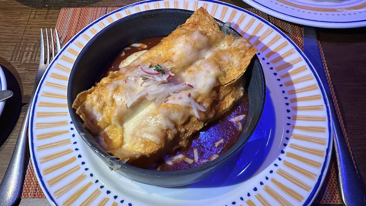 In the meantime, I would order that birria empanada for an appetizer and ask for the red chicken enchiladas as a main course. Then enjoy the amazing entertainment in Plaza Santa Cecilia for another great night on Disney Treasure.
