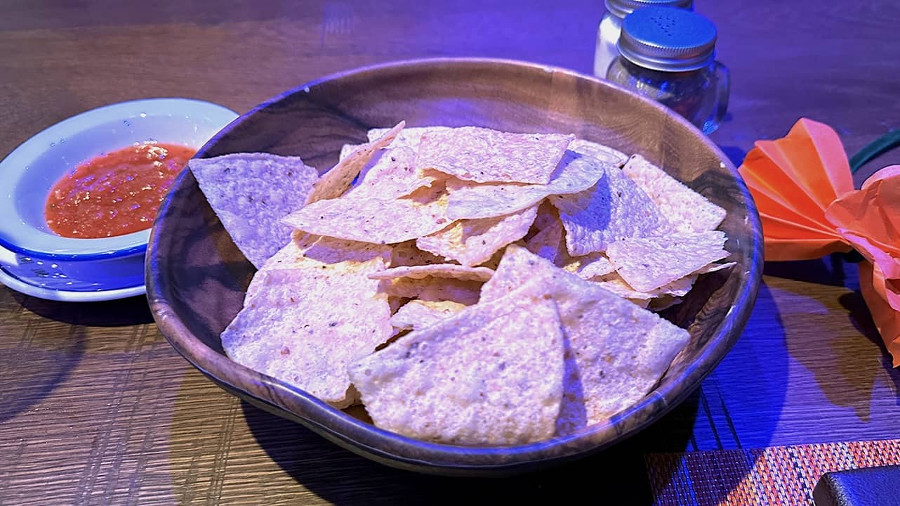 Okay, so why the need for an intervention? All seems well at Plaza de Coco. The evening starts so promising, with a walk past the ofrenda from the 2017 film, brought to life. As you reach your table, your waiter sets down chips and salsa in lieu of the cruise line's traditional bread service.