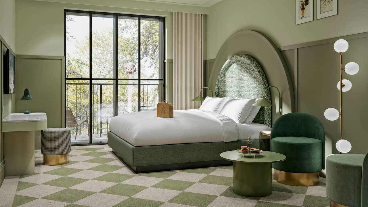 Here is a look at one of the hotel's bedrooms, overlooking the Fairytale Forest.