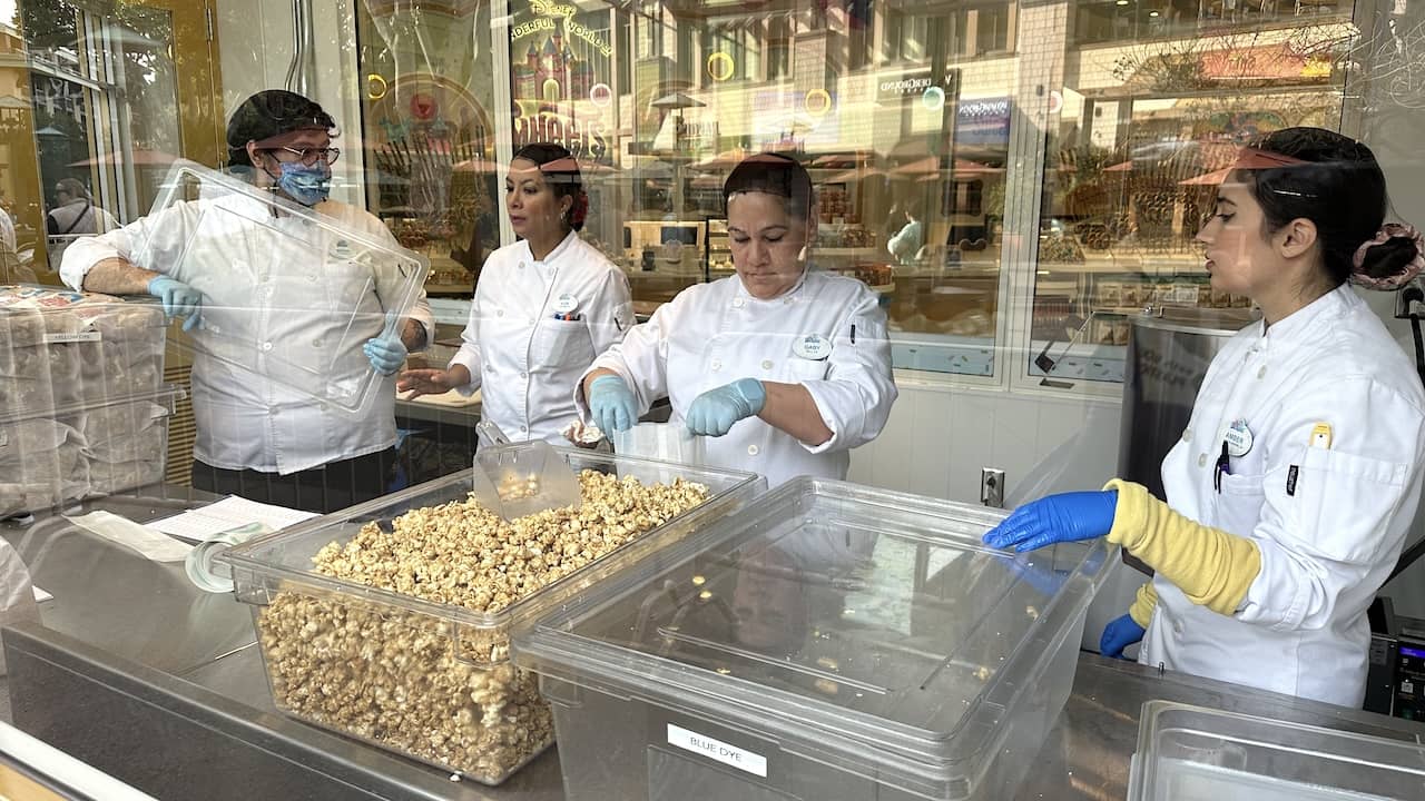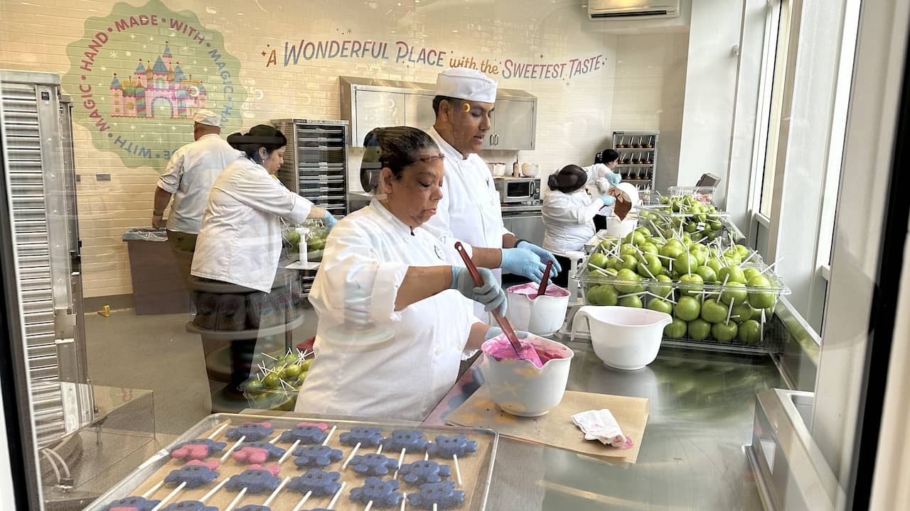 Disneyland Resort visitors can see Disney's sweet makers at work in kitchens with windows open to the Downtown Disney street - one for the popcorn and another for the candy apples and other sweets.