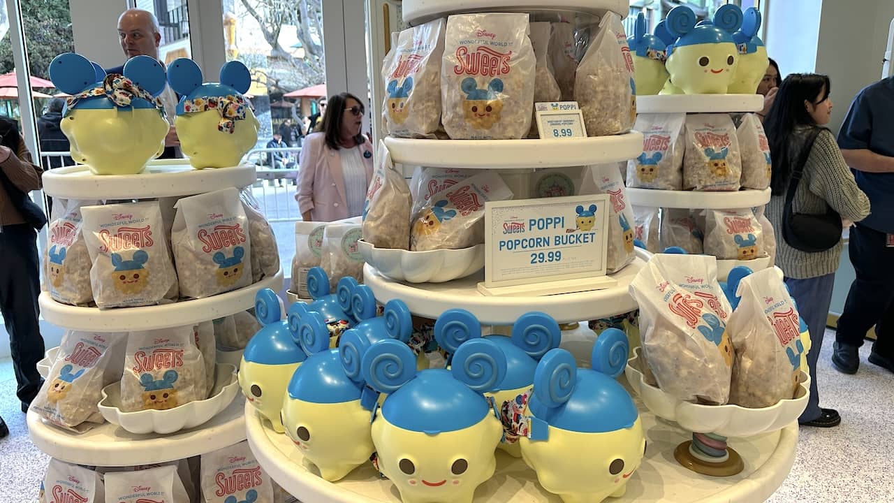 The caramel corn tastes just as it does at Walt Disney World - well-coated in delicious caramel, but not slathered to the point of becoming cloying or jaw-locking. The caramel corn coasts $8.99 a bag, and Disneyland also is introducing a new $29.99 popcorn bucket for the product, featuring a new character, Poppi.