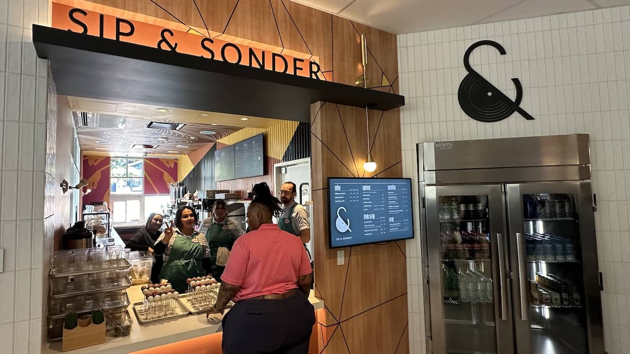 And Sip & Sonder, a coffee window that serves espresso, lattes, and teas, as well as cinnamon rolls and cake pops. (Sip & Sonder also is accessible outside the hall.)