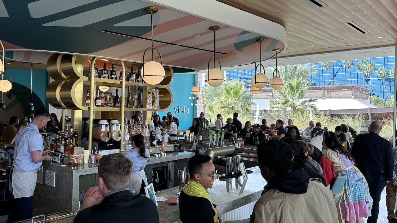 On the hall's second floor, you will find Vista, a bar that overlooks Downtown Disney.