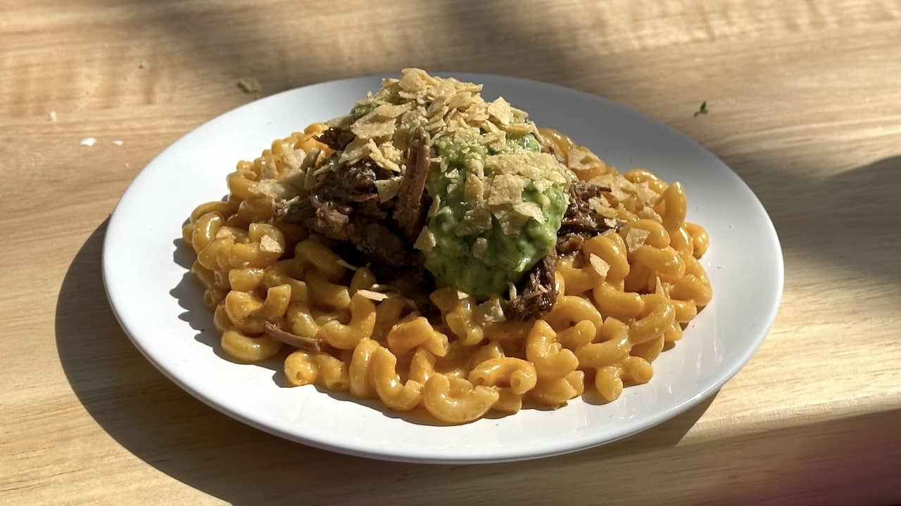 2. Birria Mac & Cheese [$9], from Mercado de Antojos: The crushed tortilla chips atop this help provide needed texture to the tender, slow-cooked beef and nacho-flavored macaroni. An avocado/onion/cilantro sauce also provides some welcomed sharpness to this dish.