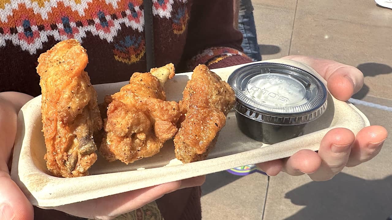 1. Lemon Pepper Wings with garlic ranch [$9], from California Craft Brews: Our unanimous favorite, this offered perfectly crispy wings with just the right amount of brightness from the lemon to balance the sharp pepper. The accompanying garlic ranch also played well, offering a nice contrast to the wings. This was the one item we could not help but finish even as we were trying to pace ourselves through the day of eating.