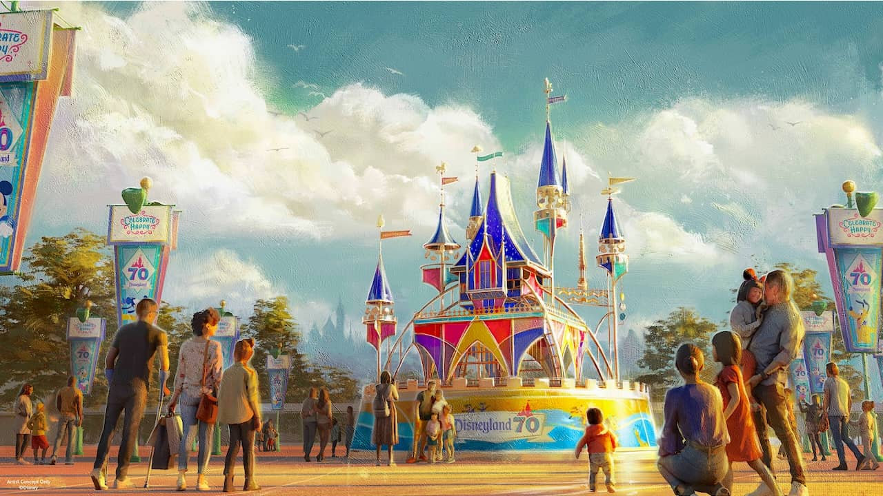 Finally, Disneyland released new concept art for some of the decor that will appear around the resort for the anniversary, including a 50-foot sculpture inspired by Sleeping Beauty Castle in the esplanade between the parks.