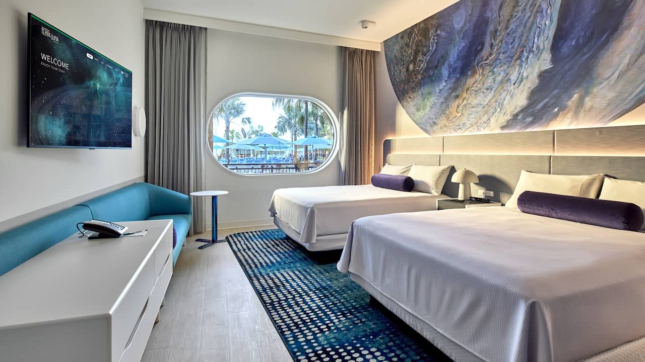 Rooms at Terra Luna feature two queen beds and "space station-styled" windows.