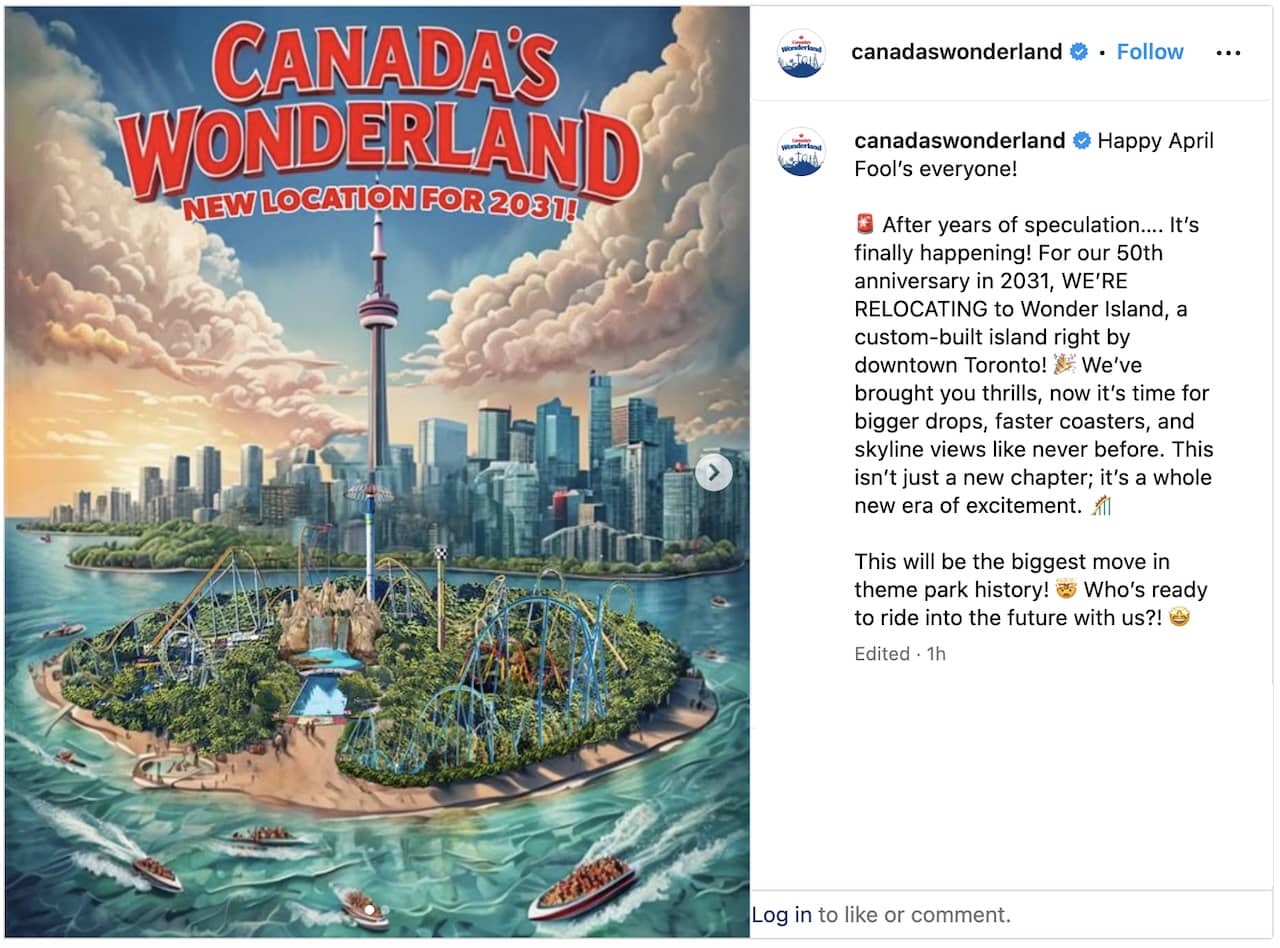 And the award for the most ambitious April Fools fake theme park project goes to our friends from Toronto. Wonder Mountain was not enough. In 2031, it's time for Wonder Island.