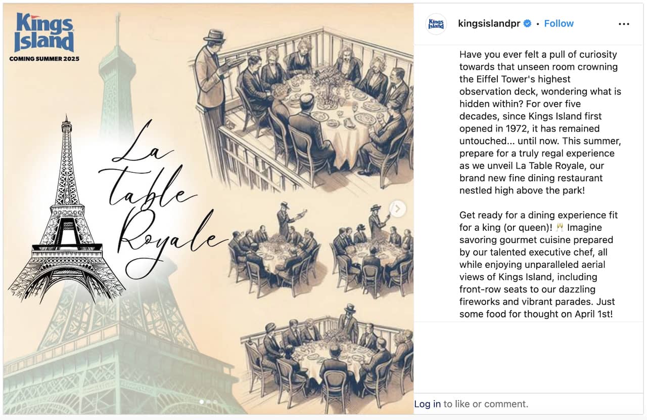 The best April Fools jokes get you for a moment. Kings Island plays off the fact that the real Eiffel Tower in Paris does have a fancy restaurant. Too bad the scaled version in Ohio isn't big enough for that. (Hey, maybe bring back the International Street Restaurant full time, instead?)