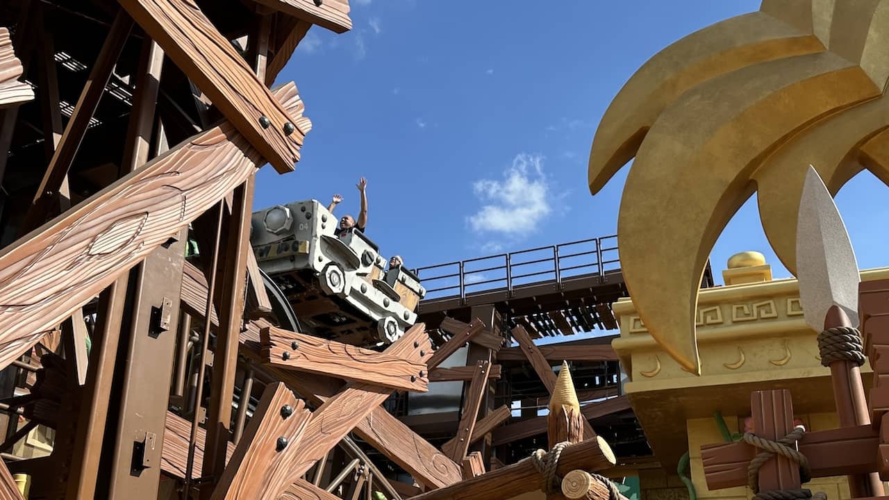 Orlando’s installation includes the Yoshi’s Adventure track ride and Donkey Kong Country expansion that Universal did not have room to install in Hollywood. Donkey Kong’s Mine-Cart Madness is therefore the first American installation of Universal’s “Boom Coaster,” a novel design that enables a visual illusion of a coaster train jumping its track.