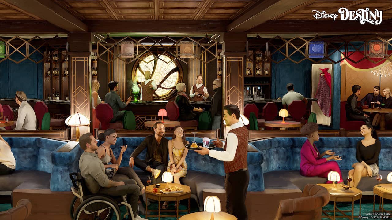 Disney Cruise Line also offered a first look at The Sanctum, a Dr. Strange-themed bar that will offer drinks and stuffed waffles.
