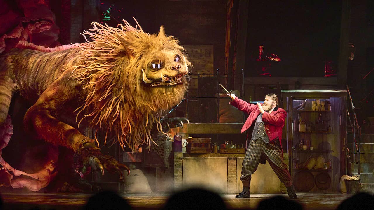 A squib assistant opens this Pandora’s box, allowing the show to develop beyond its cute circus-themed opening act with dancers and a bubble artist. The stage lift effect to depict the opening suitcase is stunning, as are the stage effects that follow to bring the magical creatures into our world through puppetry and media.